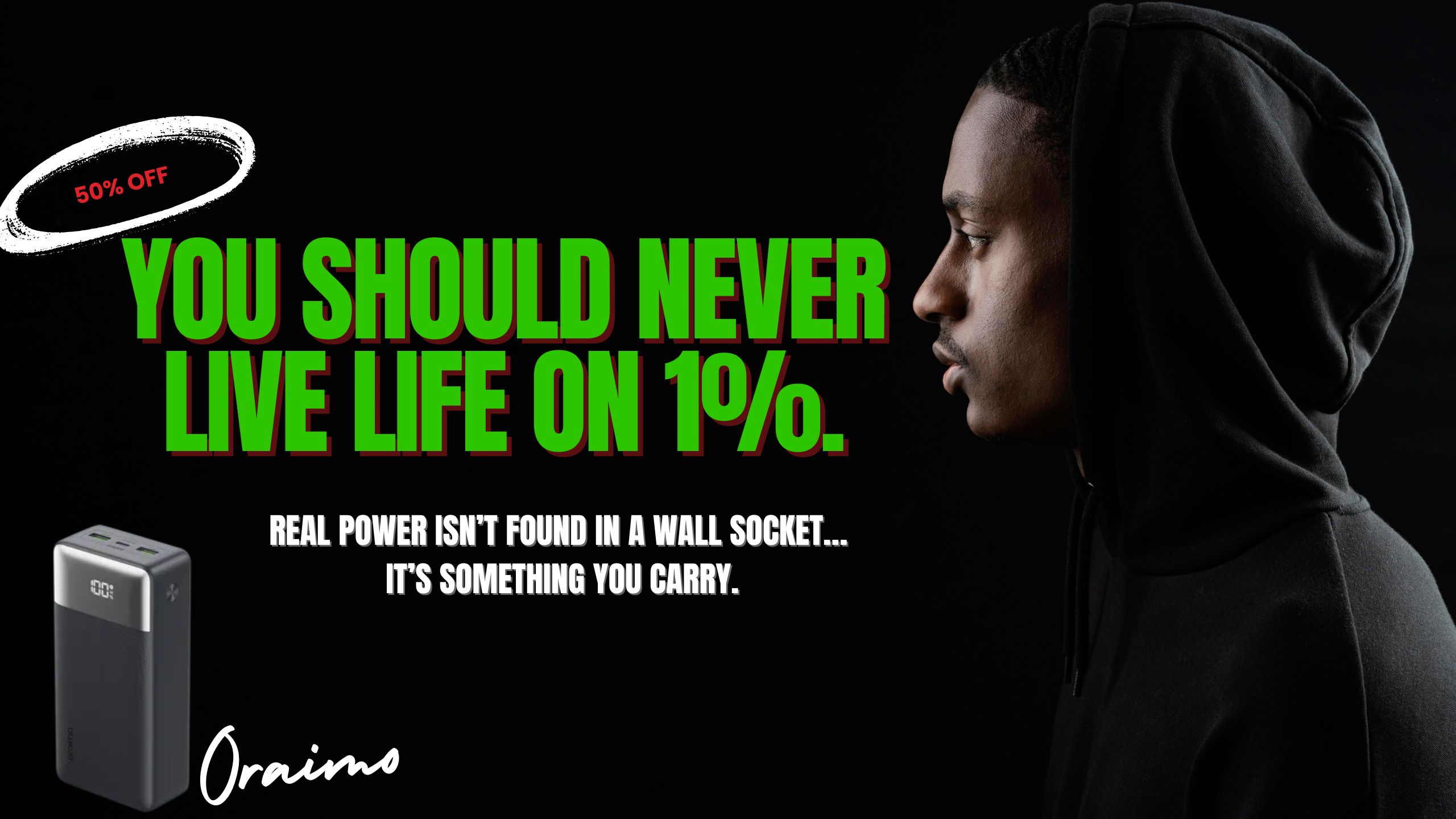 Now at Only KSh 4,000 – 50% OFF! Stay powered all month long with the beast of endurance — Oraimo Power Bank 40,000mAh.